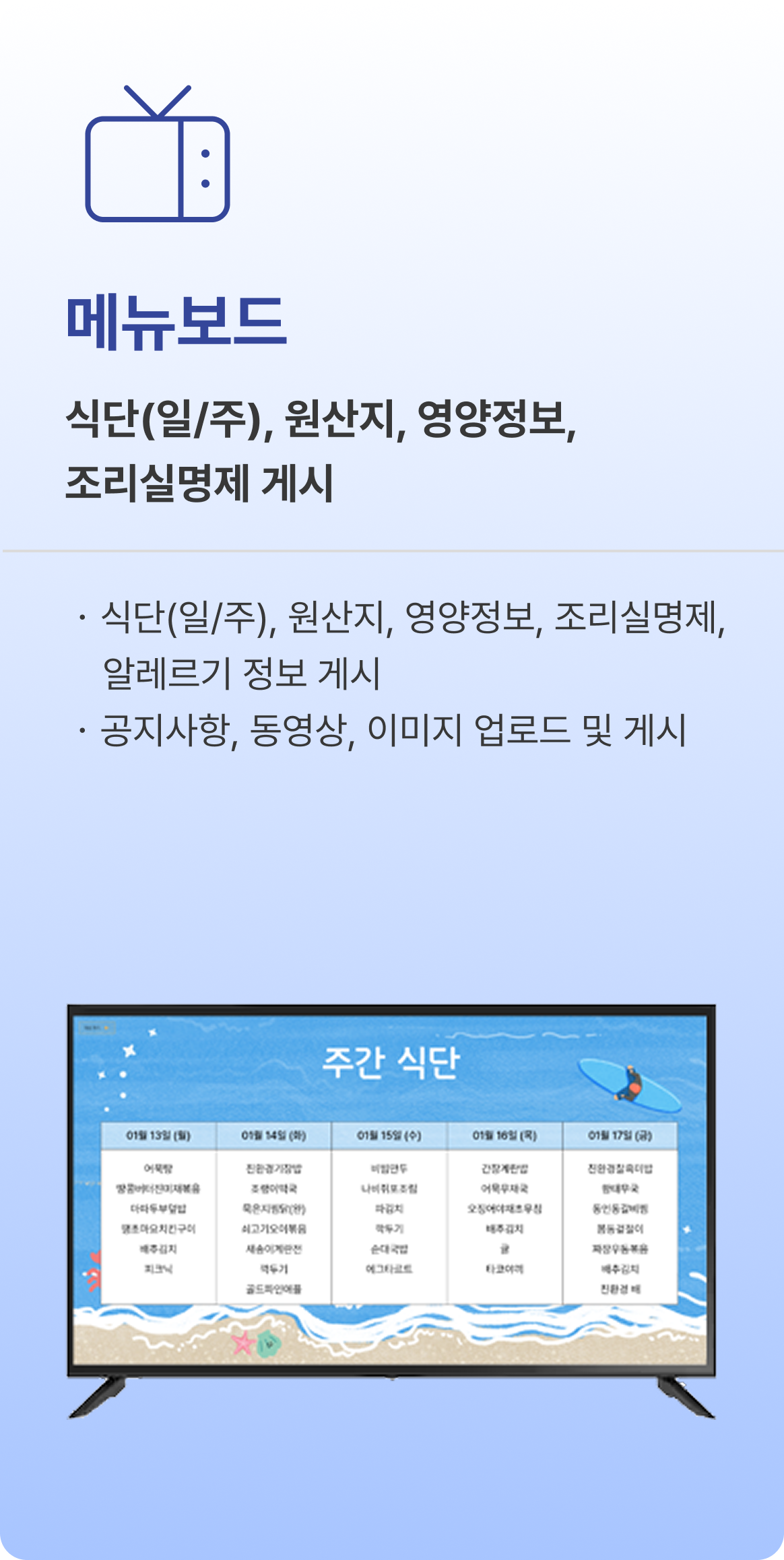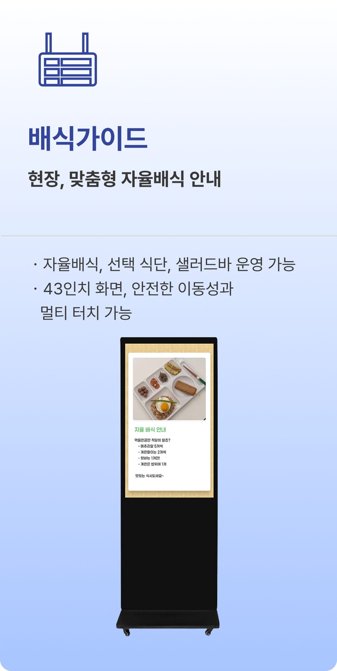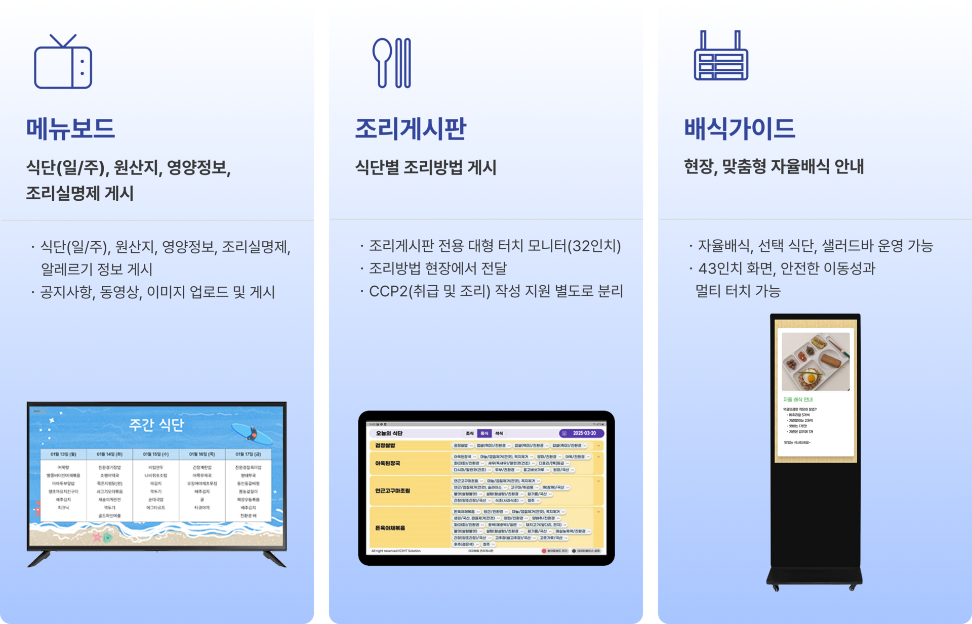 HACCP 보안대책 및 규정을 준수하고 학교급식 환경에 적합한 구성으로 신속하고 간편한 설치!