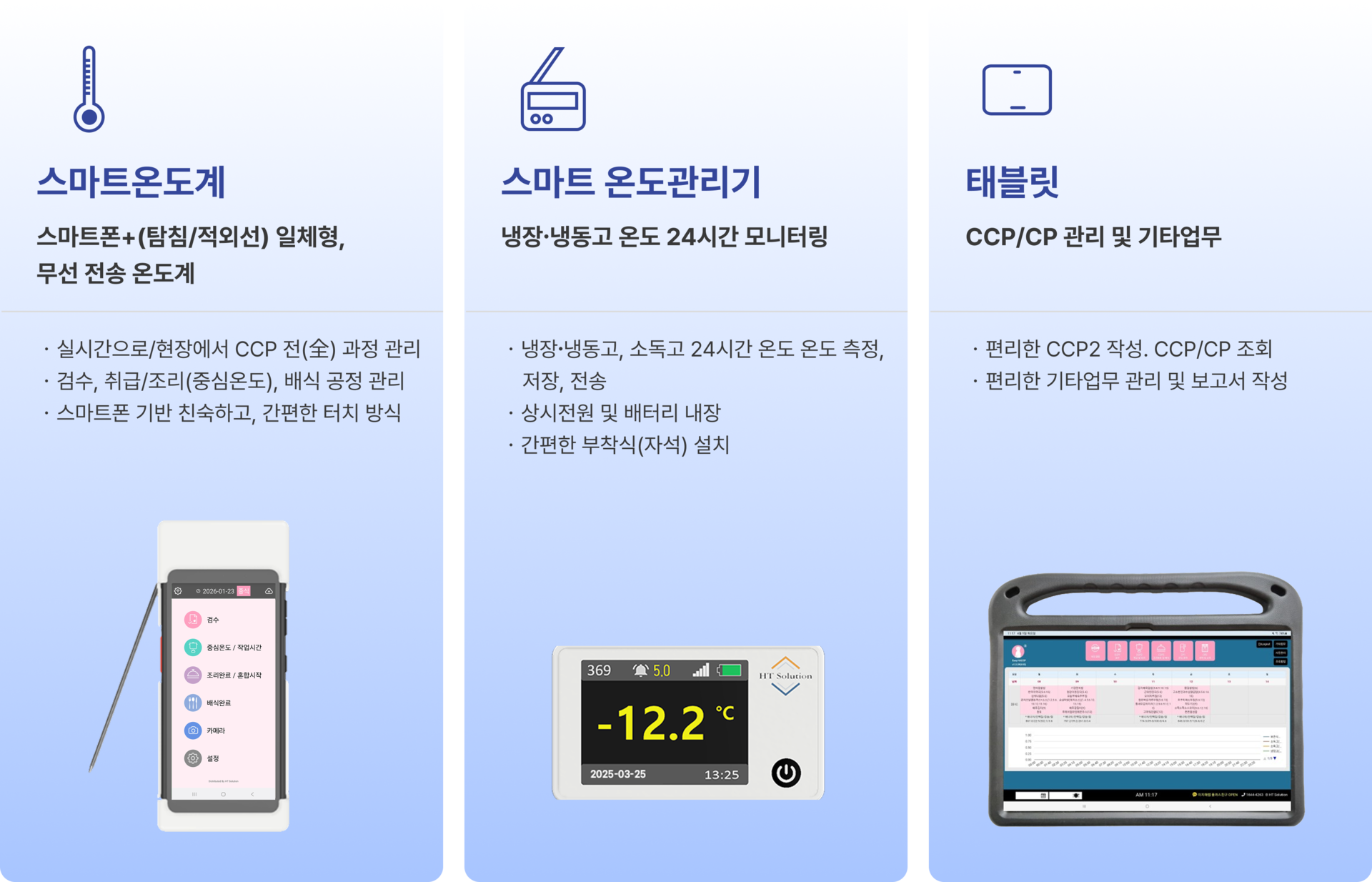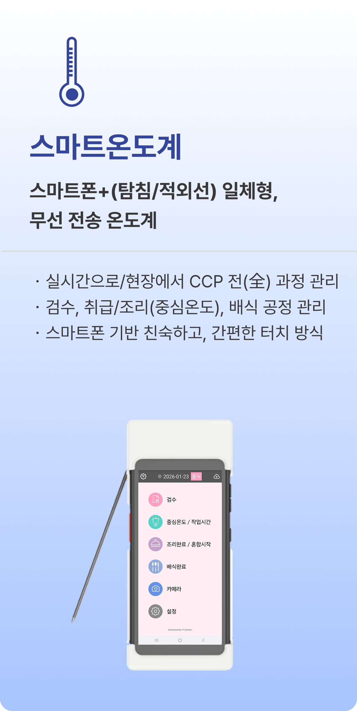 ![]() | 스마트 온도계 하나로 실시간 CCP 관리 간편하고 정확한 CCP 관리, 업무 경감 |